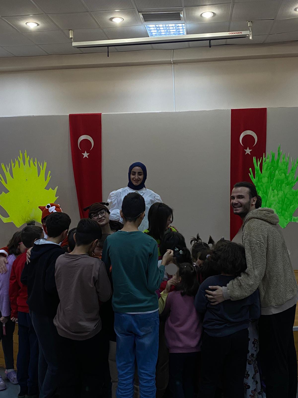 Öğrencilerimiz Muhammet Ali Dil ve Saynur Bulut tarafından organize edilen etkinlikte, çocuklar için özel bir tiyatro oyunu sahnelendi. Balonlar, çikolatalar ve yüz boyama etkinlikleriyle çocukların yüzlerinde tebessüm oluşturan öğrencilerimiz, sanatın iyileştirici gücünü kullanarak minik kardeşlerimize unutulmaz bir gün yaşattı.
