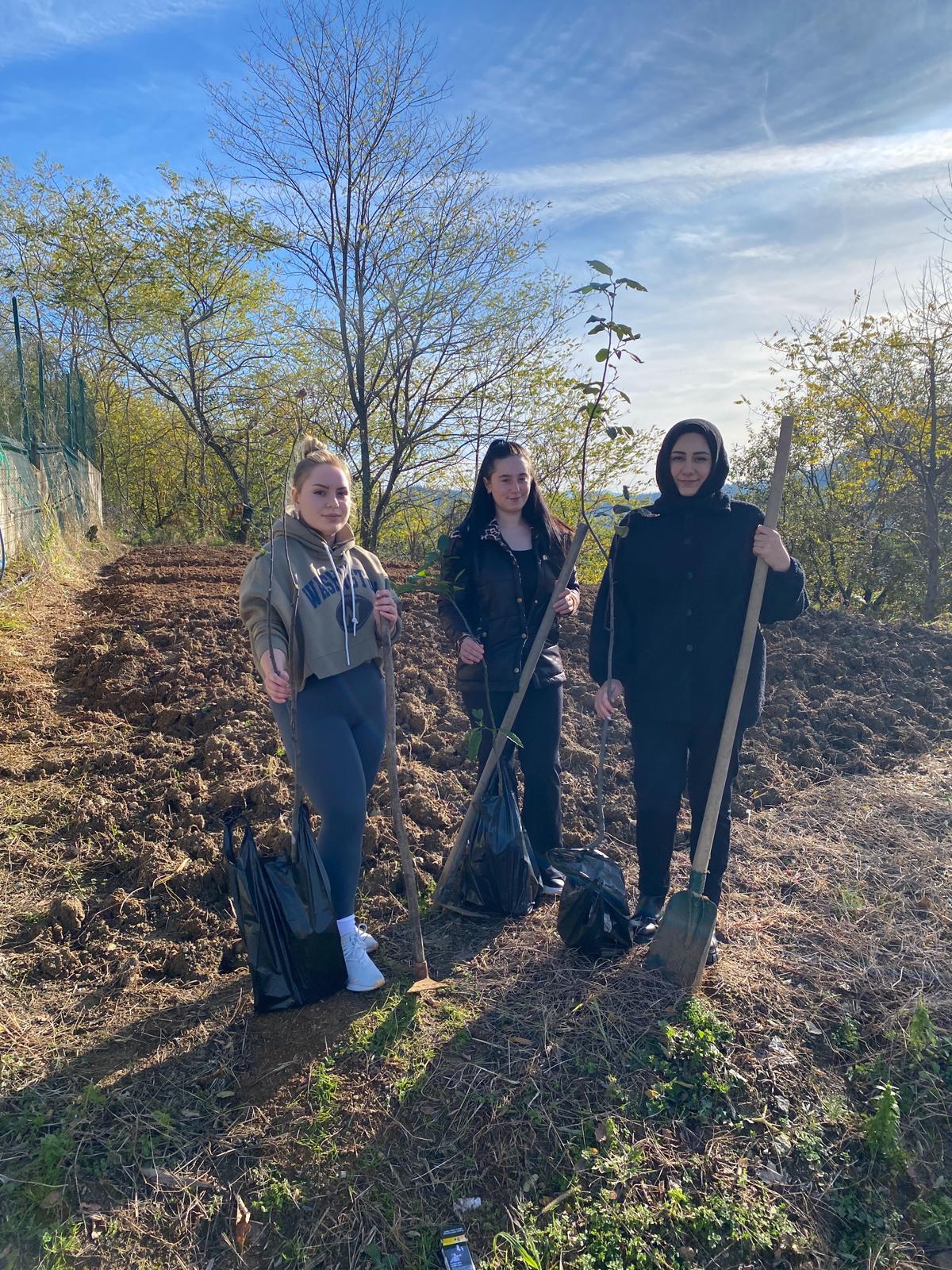 Öğrencilerimiz Nisa Nur Civelek, Beyza Nur Pala ve Meryem Güllü, belirledikleri alana mandalina fidanı dikerek can suyunu verdi. Şehidimizin ruhuna ithaf edilen bu anlamlı proje, çevreye kalıcı bir değer bırakırken, öğrencilerimizin milli ve manevi değerlere olan bağlılığını da gözler önüne serdi.